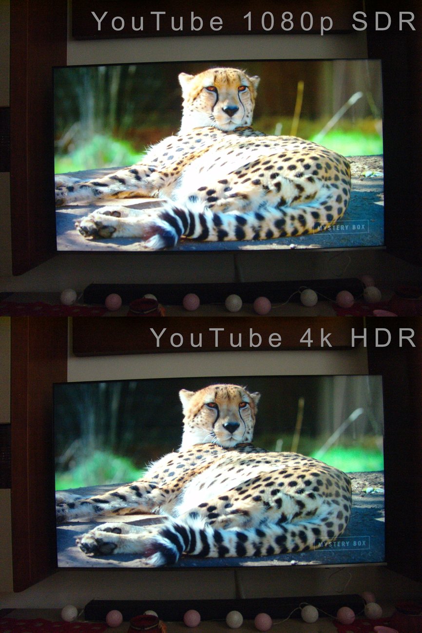 Z tego powodu postanowiłem wykonać test przedstawiający działanie HDR na moim telewizorze we wbudowanej aplikacji Netflixa w porównaniu z wersją bez HDR. W eksperymencie wykorzystałem serial Chambers. Dla wymuszenia obrazu bez HDR skorzystałem z Chromecasta 2 dzięki czemu uzyskałem 1080p SDR. Na koniec sprawdziłem również działanie HDR w aplikacji YouTube dla potwierdzenia, że telewizor jest ustawiony prawidłowo. Test przeprowadziłem lustrzanką ustawioną w tryb manualny na jednakowym poziomie jasności dla wszystkich zdjęć. Nie przeprowadzałem żadnej korekcji fotografii. Telewizor ustawiłem w tryb film oraz wyłączyłem oszczędzanie energii i wszystkie postprocesory obrazu takie jak „contrast enhancer” itp. Wersja oprogramowania mojego tv: T-KTM2DEUC - 1251.0, BT - S. Ocenę wyników pozostawiam Państwu.