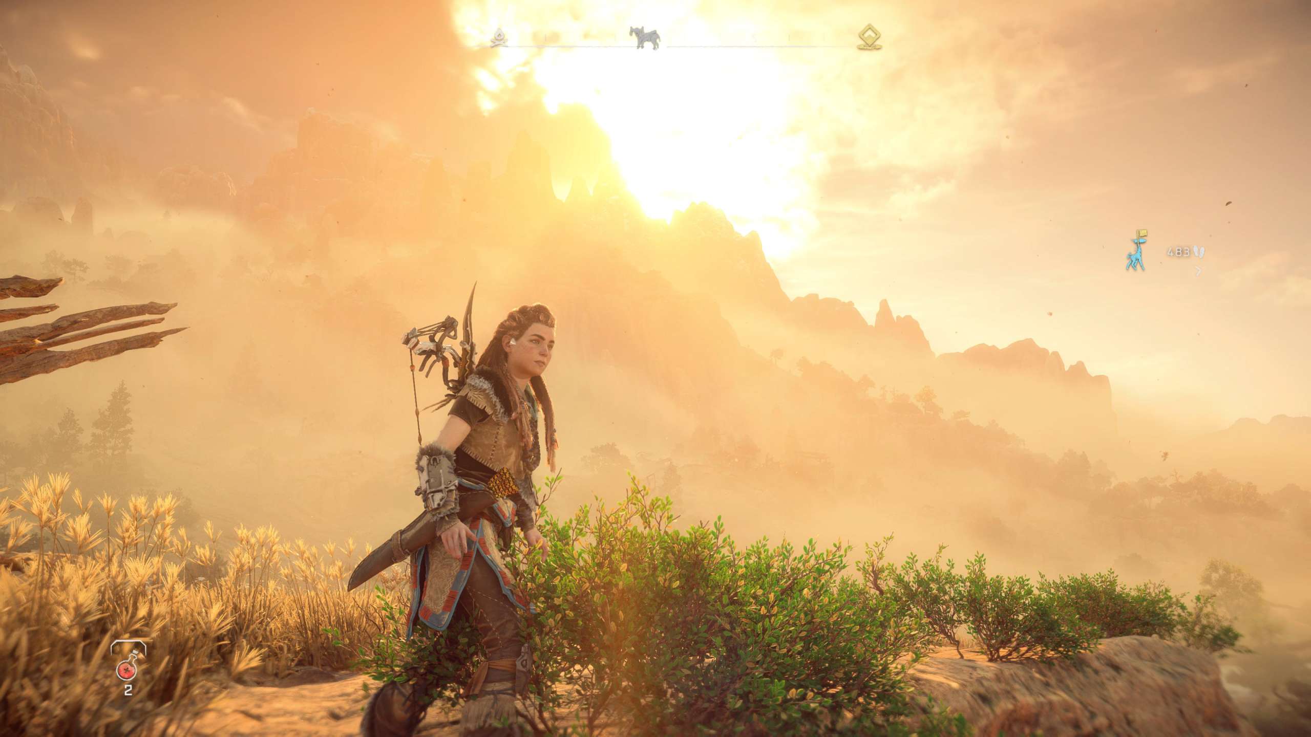 Co zaś tyczy się optymalizacji Forbidden West na PS5, to jestem mocno rozdarty. Gra – podobnie jak szereg innych tytułów na nową generację – oferuje dwa tryby: “Lepsza rozdzielczość” i “Wyższa wydajność”. Niespodzianek nie ma; pierwszy to stabilne 4K przy 30 klatkach na sekundę, drugi natomiast oferuje płynność na poziomie 60 fps, ale kosztem rozdzielczości – ta jest dynamiczna i oscyluje w okolicach 1440p. Już dawno przyzwyczaiłem się do ogrywania nowości w najwyższej możliwej płynności, więc wybrałem “Wyższą wydajność”. Nie omieszkałem jednak bezpośrednio porównać ze sobą obu trybów. Do 60 fps nie mam żadnych zastrzeżeń – gameplay jest płynny, a żadne spadki klatek nie są odczuwalne. Nie mogę też powiedzieć, by widoczne były jakieś szczególne ubytki graficzne. Jasne, nie jest tak ostro i szczegółowo jak w drugim z trybów, ale w żaden sposób nie ujmuje to urokowi Forbidden West.