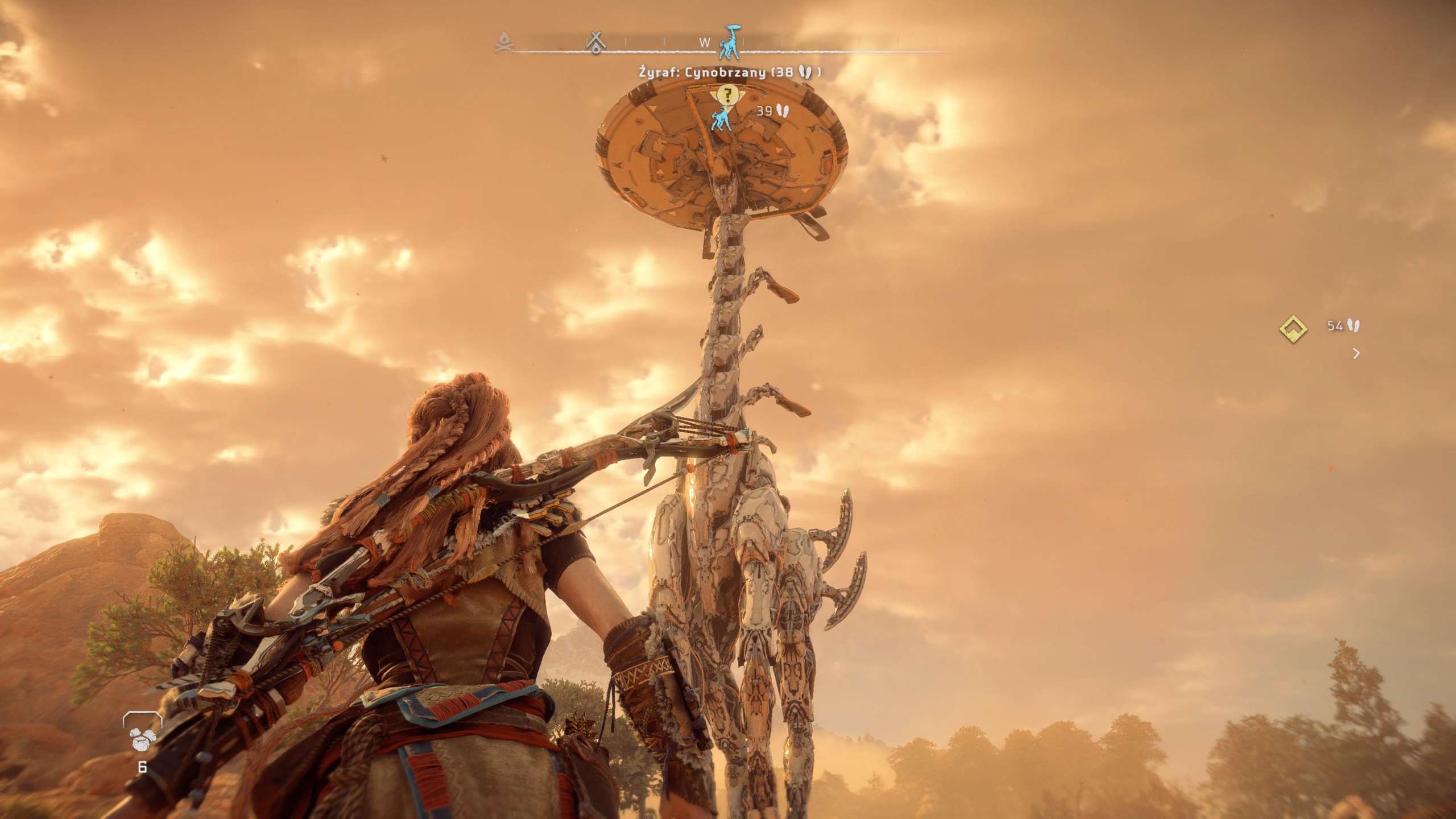 Horizon Foridden West zaimponowało mi szczególnie nocą – i to bardzo! Poziom dbałości o detale po zapadnięciu zmroku momentami wręcz przytłacza. Wtedy pojawia się przepiękne, rozgwieżdżone niebo (w końcu w tym świecie nikt już nie emituje nadmiaru sztucznego światła), klimatyczna mgła i poświata księżyca. Źdźbła trawy powiewają spokojnie na wietrze, a nieopodal przechadza się potężna, przypominająca żyrafę maszyna, która omiata świecącymi na niebiesko “ślepiami” całą okolicę. Znakomicie wypadają też wcześne poranki i zachody słońca. Gra wręcz zmusza w takich momentach do zwolnienia i nacieszenia się widokami. Nie bez przypadku cały początek mojego tekstu poświęcam kwestiom graficznym, nie skupiając się na fabule czy elementach RPG, których jest przecież w serii Horizon całe mnóstwo.
