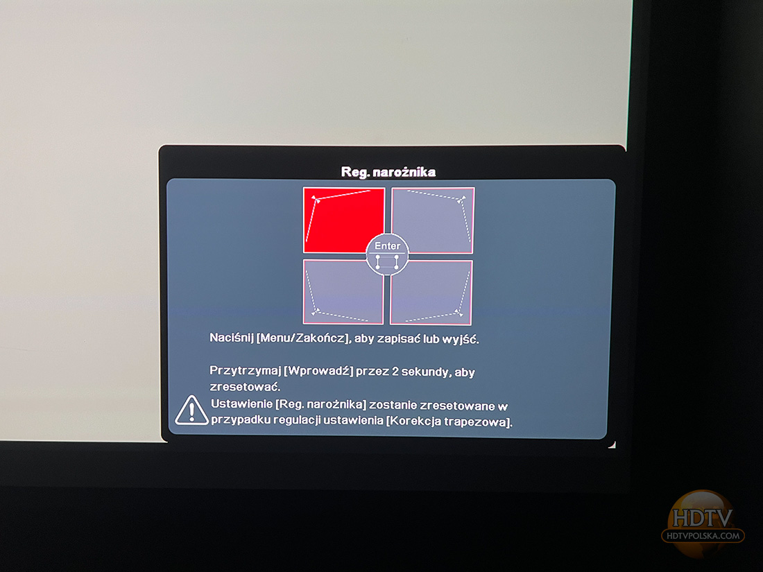 Wyróżnikami projektora ViewSonic X2-4K mają być przede wszystkim wysoka częstotliwość odświeżania oraz niskie opóźnienie sygnału, czyli input lag. W pierwszej kolejności postanowiliśmy więc sprawdzić te kwestie, ale najpierw musieliśmy oczywiście zainstalować sam projektor. Wykorzystaliśmy do tego własny ekran, choć równie dobrze jako obszar docelowy projekcji można wybrać białą ścianę. Model X2-4K jest elastycznym projektorem, bo charakteryzuje się dosyć krótkim rzutem i nie trzeba usuwać z jego drogi znajdujących się w pomieszczeniu elementów wystroju. Obraz o przekątnej 100 cali osiągnęliśmy ustawiając go na stoliku zaledwie 1,5 metra od ekranu. Na dodatek nie musieliśmy się wcale napracować przy odpowiednim dopasowaniu obrazu do ekranu, jako że produkt marki ViewSonic zapewnia menu ustawień pionowej i poziomej geometrii obrazu, a na dodatek także opcję dostosowania czterech narożników. Dzięki temu nie musimy ustawiać projektora centralnie, co z pewnością spodoba się lubiącym wygodę graczom.