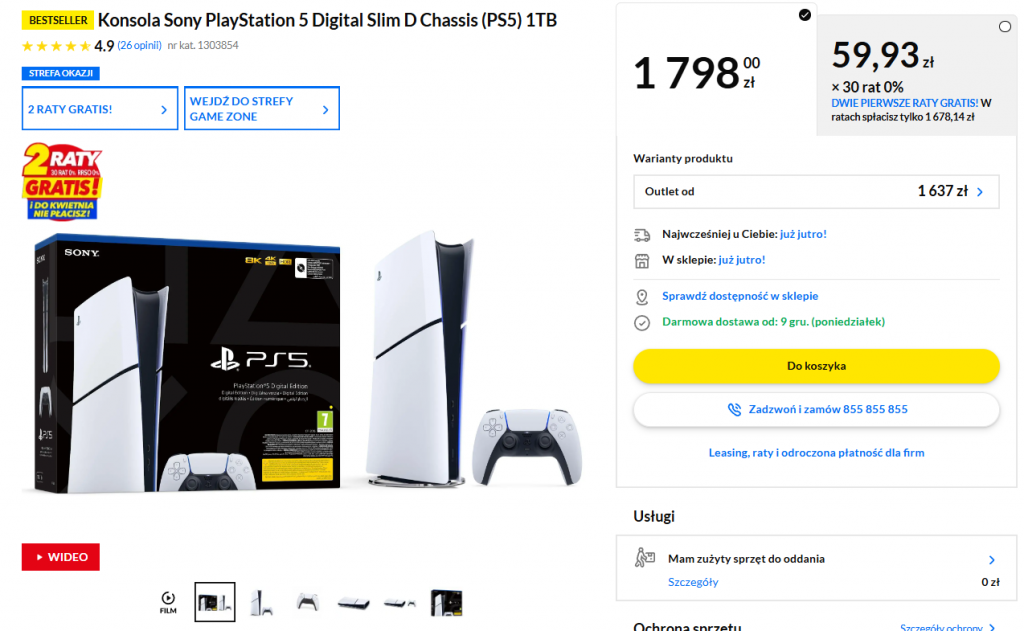 | Konsola Sony PlayStation 5 Digital Slim (Nowość) | 1 798 zł |
