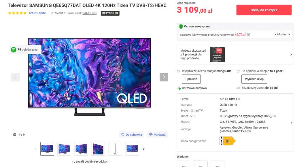 Konkurencja dla Samsung Q77D 65″? Przyjrzyjmy się alternatywnym modelom, które możemy kupić w podobnych cenach.
