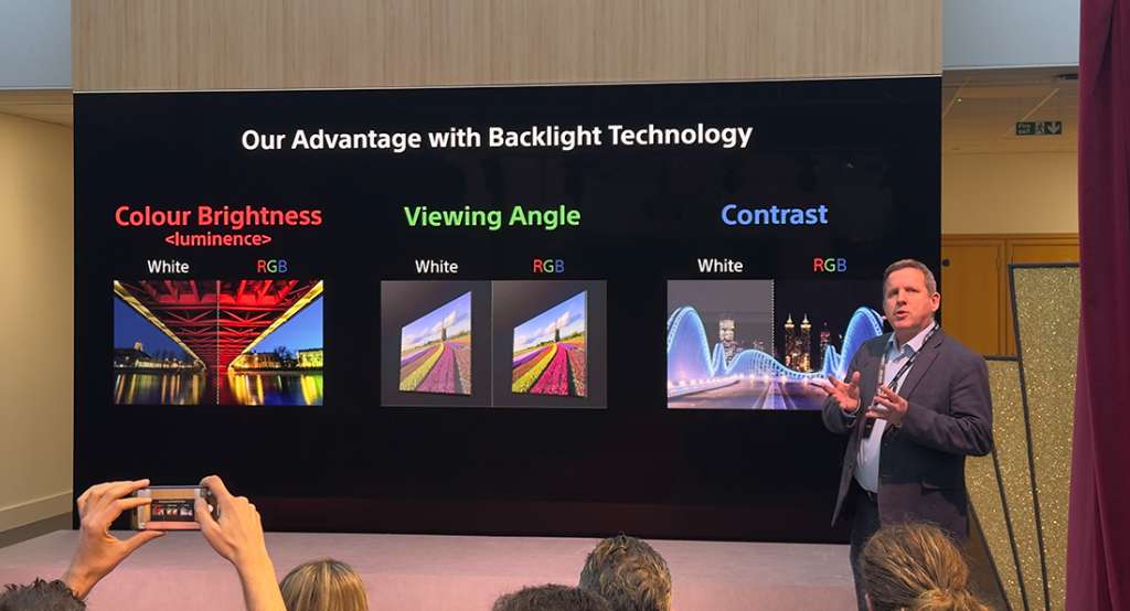 Zacznijmy od tego, że podświetlenie RGB LED w telewizorach Sony to (jeszcze) melodia przyszłości. Podczas naszej środowej wizyty w siedzibie firmy w podlondyńskim Weybridge nie zobaczyliśmy żadnego telewizora czy choćby matrycy wyposażonej w nowe podświetlenie, usłyszeliśmy za to niemało o scenariuszu na przyszłość. Plany zakładają wprowadzenie na rynek modelu RGB LED, który mógłby być potencjalnie przełomowy dla branży. Sony nie zrobi tego jednak w tym roku – za kulisami dało się usłyszeć nieśmiałe zapowiedzi dotyczące roku 2026.