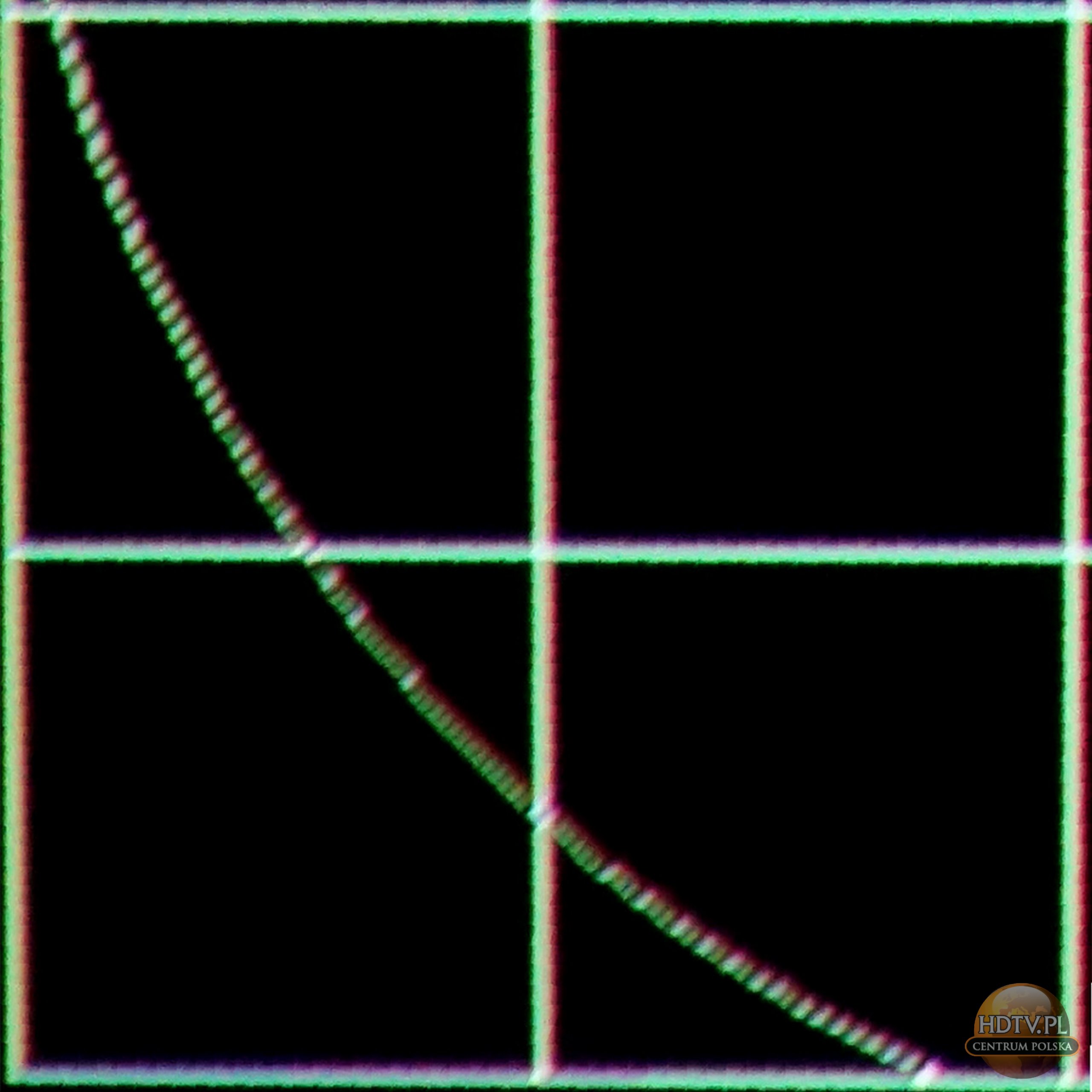 Osoby interesujące się modelem VW790 znają pewnie też zagadnienie automatycznej regulacji konwergencji, która domyślnie włączona jest w menu serwisowym projektora. Pozwala ona uzyskać lepszą powtarzalność projektorów, dzięki niej mamy zagwarantowane niezłą zbieżność kolorów składowych od razu po wyjęciu z pudełka. Jeśli jednak poświęcimy trochę czasu na własnoręczne wyregulowanie parametrów projekcji to funkcja automatycznej korekcji okaże się nie tyle zbędna, co nawet… szkodliwa! Zanim przejdziemy dalej nadmienię jednak, że zjawiska te są wyjątkowo subtelne i nie udało mi się dopatrzyć ich konsekwencji na filmach. Na planszach testowych potrafią jednak wyglądać alarmująco: