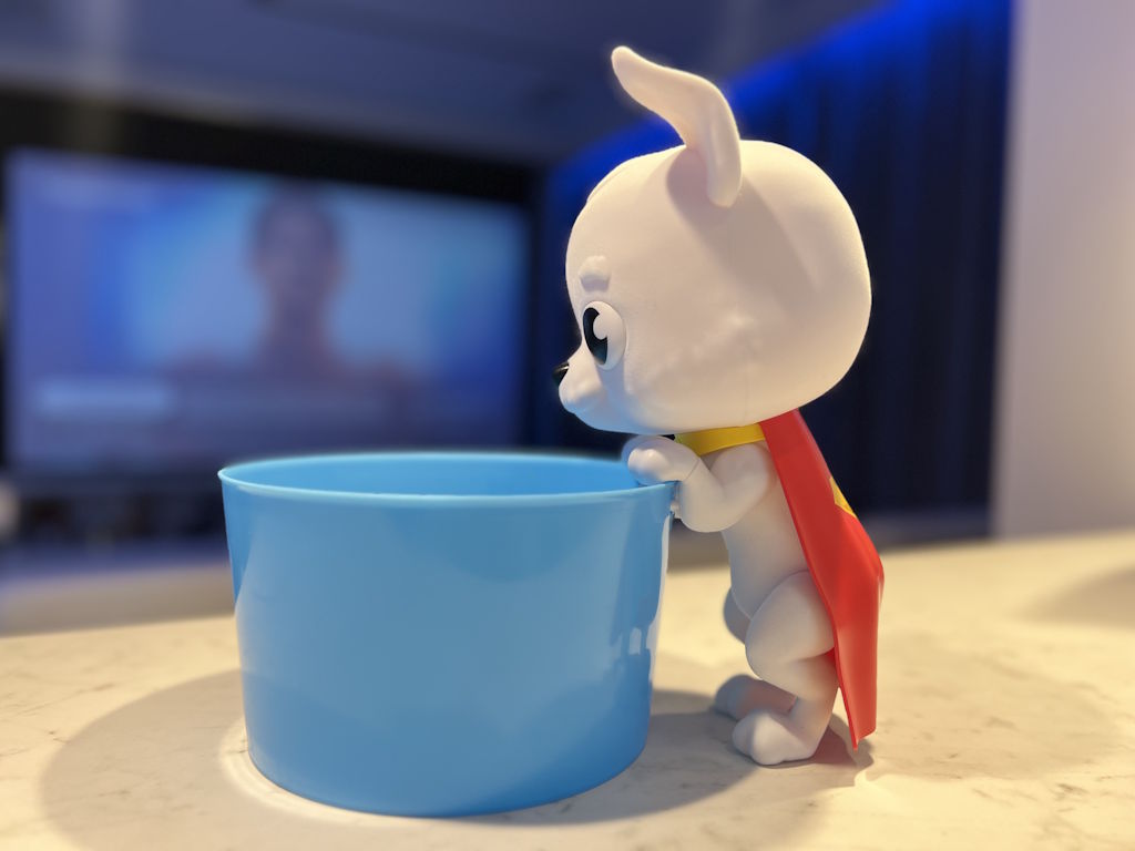- Wiaderko na popcorn – do wiaderka dołączony jest wysokiej jakości piesek Krypto, który pokryty jest specjalnym materiałem imitującym sierść – takiego czegoś jeszcze nie było! Cena: 109,90 zł