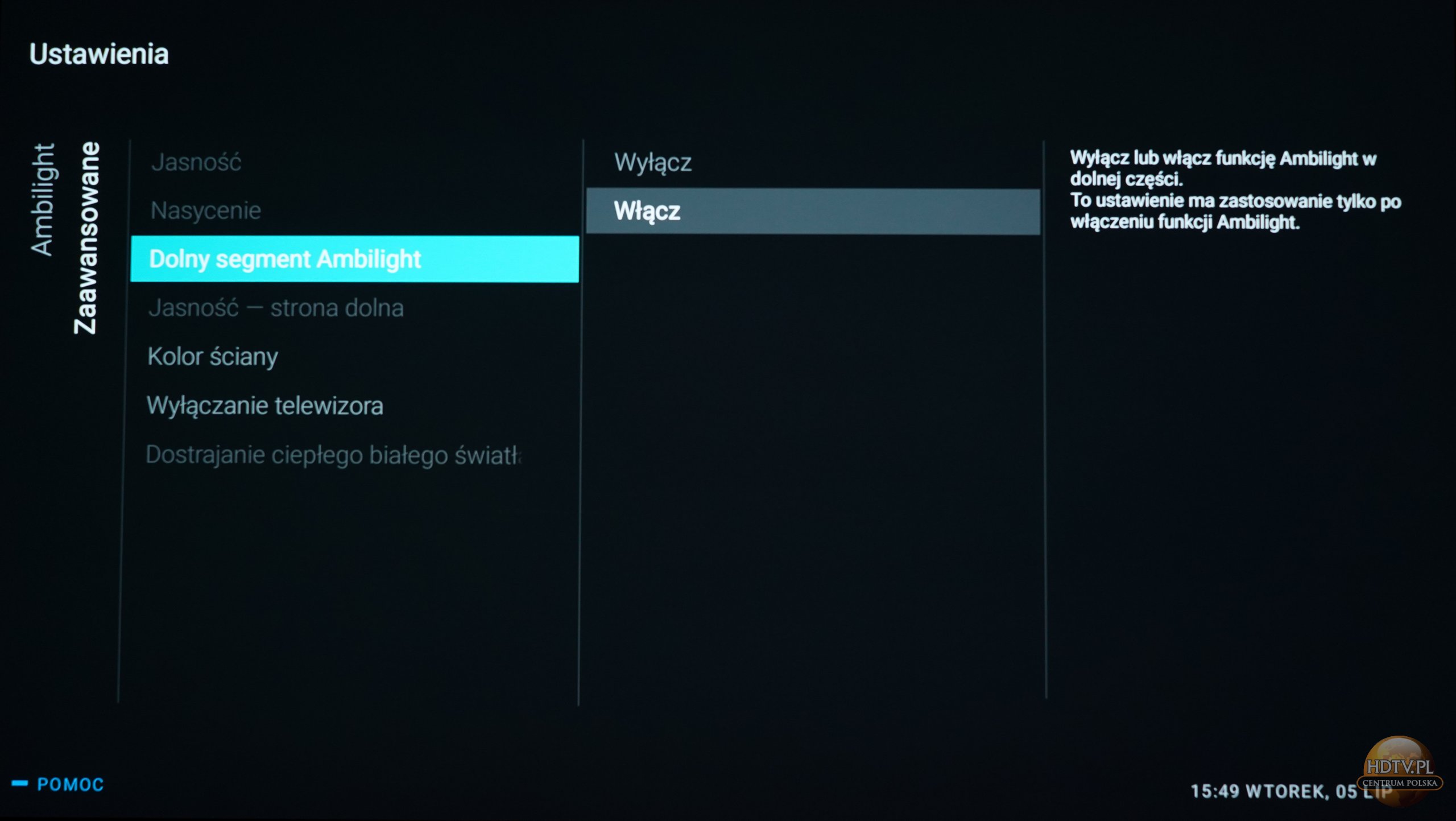 W telewizorze Philips OLED907 do menu systemu Ambilight możemy wejść za pomocą przycisku na pilocie lub poprzez wejście w ustawienia telewizora. Po uruchomieniu menu, zobaczymy mnogość opcji i ustawień.